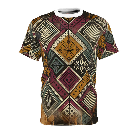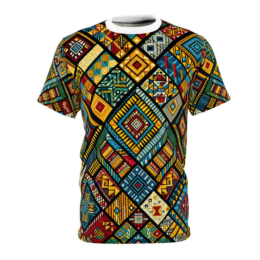 Vibrant African Tribal Diamond Geometric Design T-Shirt - Rich Colorful Cultural Artwear - African Tribal Pattern-Inspired Tee