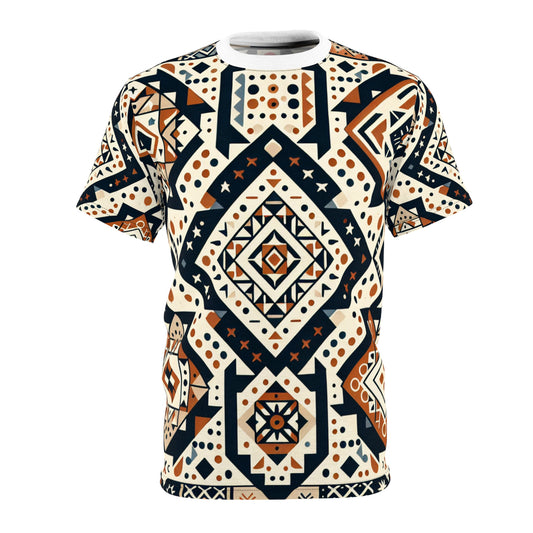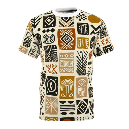 African-Desert Fusion Tee: Tribal Totem and Southwest Nature Tapestry in Earthy Tones - African Tribal Pattern-Inspired