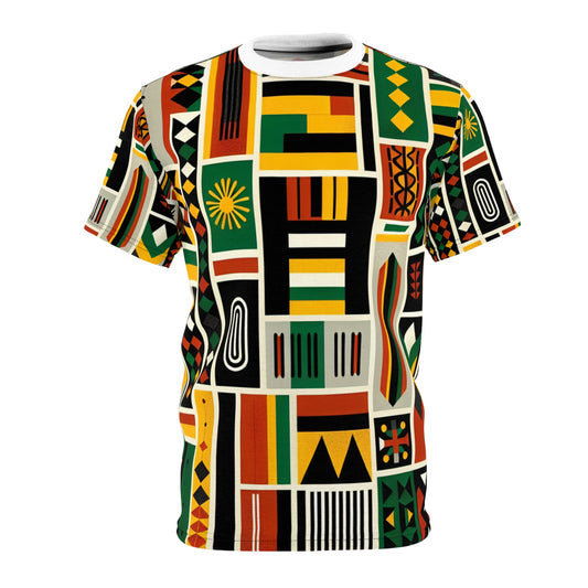 Pan-African Legacy Tee: Vibrant Kente-Adinkra Community Artwork in Bold Colors - African Tribal Pattern-Inspired Tee