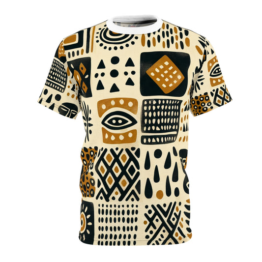 Handcrafted, Abstract African Mud Cloth Design T-shirt, Tribal Motifs in Organic Colors - African Tribal Pattern-Inspired Tee