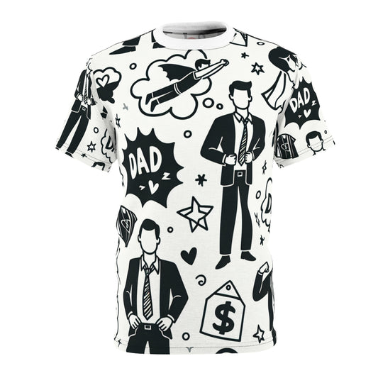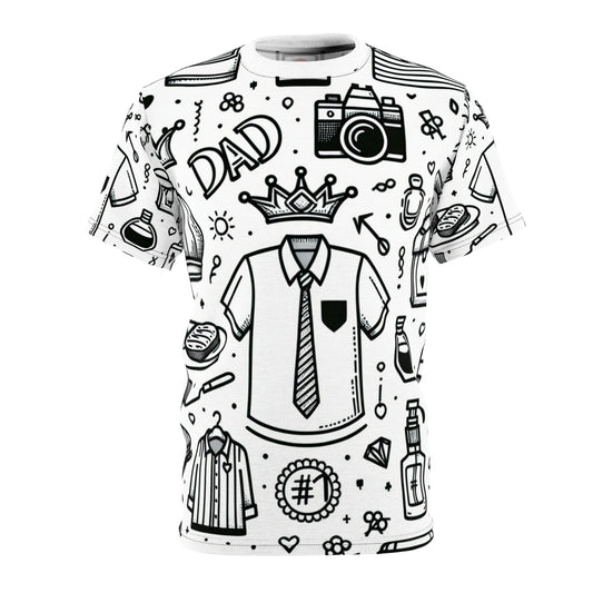 King Dad Monochrome Tribute T-shirt - Playful Line Art Pattern of Fatherly Roles - Stylish, Minimalist, & Perfect for Father's Day - Father's Day Tee