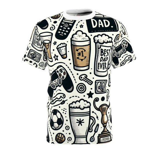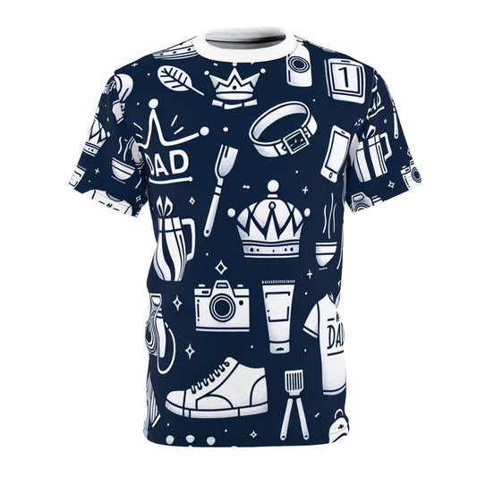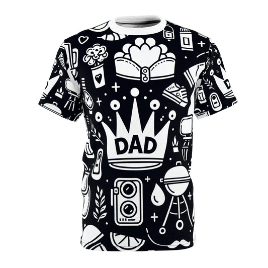 King Dad: Monochromatic Tribute T-Shirt - Playful Seamless Pattern with BBQ Grill, Camera, #1 Dad Icons - Father's Day Tee