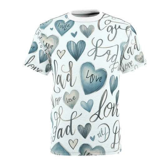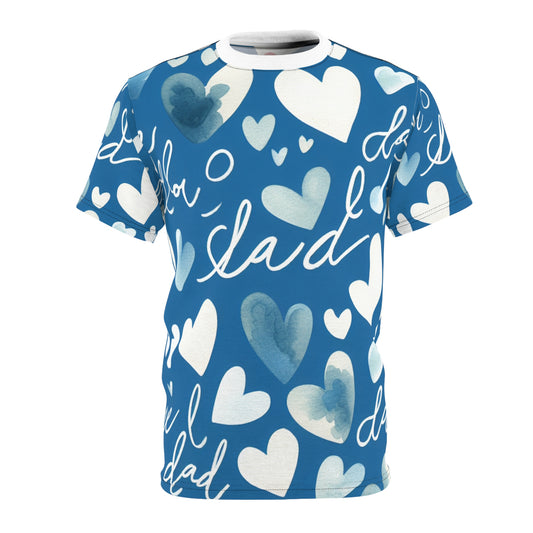 Loving Dad Soft Blue Hearts Tee - Childlike Script, White Background - Father's Day Special - Gift for Him