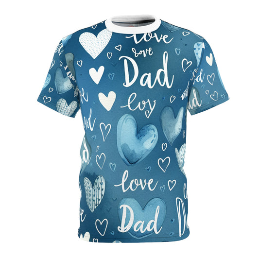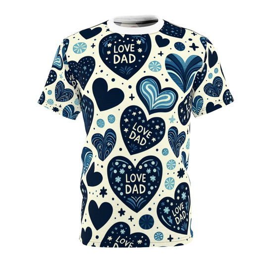 Love Dad Heart Pattern T-Shirt - Blue Shades on Navy, Starry Night Detail - Tender Father's Day Design Tee - Gift for Him