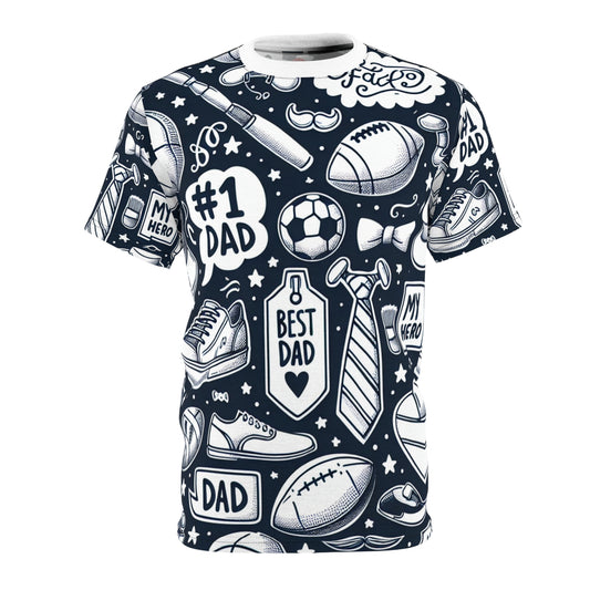 A Tribute to Fatherhood T-Shirt: Line-Art Icons of Dad's Versatile Roles Pattern Tee - Gift for Him