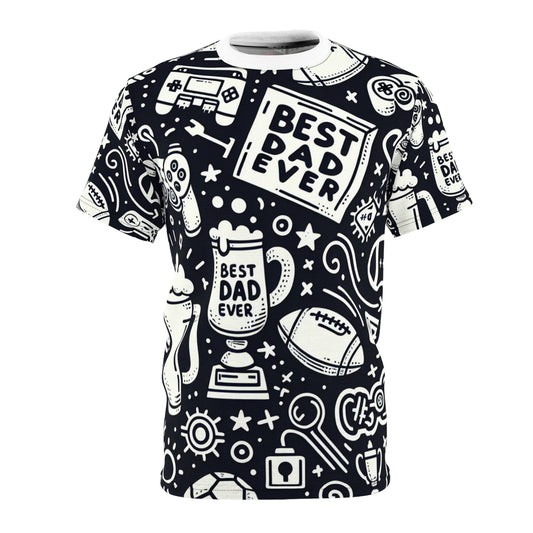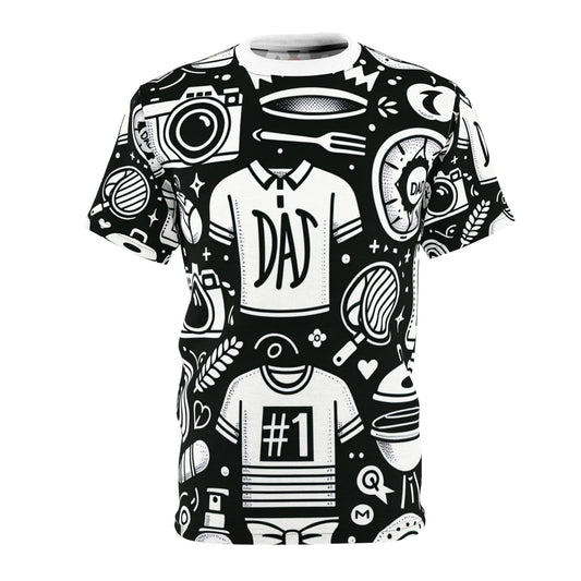 Dad Life Playful Monochrome Patterned T-shirt - King Dad, Moment-Capturer, Grill-master, Style Guru, #1 Father - Father's Day Tee