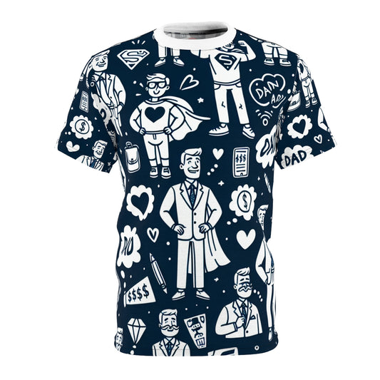Father’s Day Special - Funky Blue 'SuperDad' Tee: Minimalist Doodles for Work-Life Balance, Perfect Family Gift - Gift for Him
