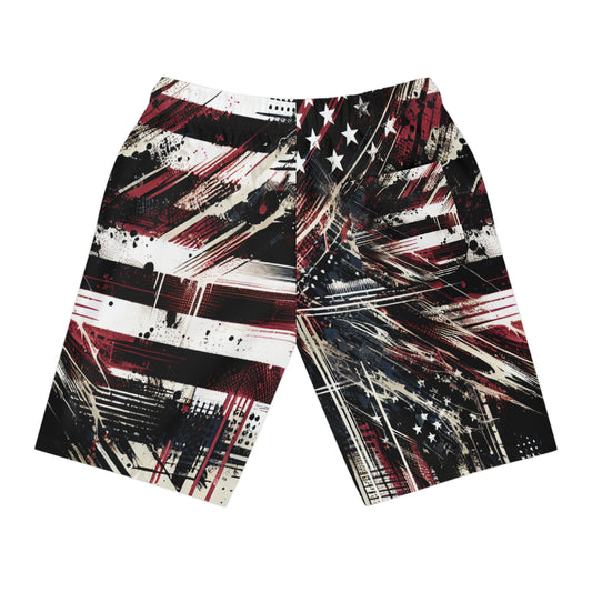 Grunge-style Patriotic Streetwear Shorts: Distressed American Flag with Urban Graffiti Elements