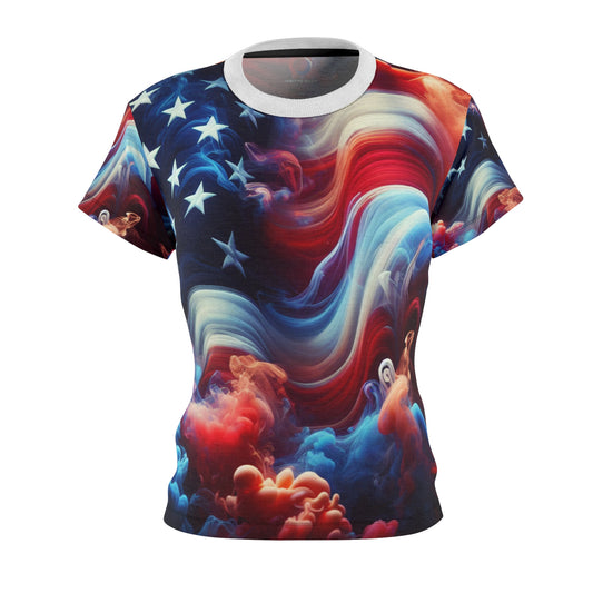 Women's Mystical American Flag T-shirt: Dreamy, Artistic, Fluid Design Celebrating Unity & Pride - Patriotic Streetwear Tee