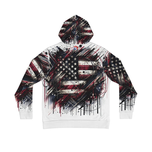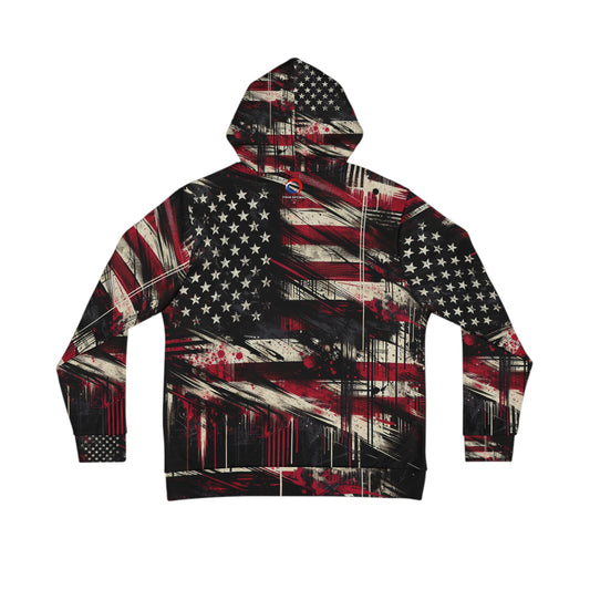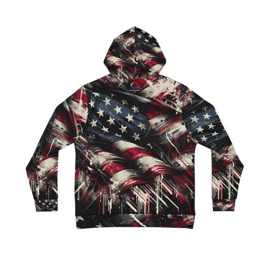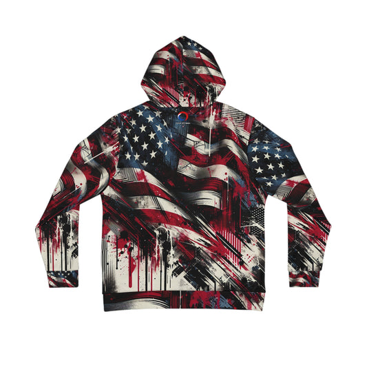 Intense Urban Patriotism: Grunge Streetwear Hoodie with Distressed Graffiti American Flag Artwork, Raw Energy Street Fashion