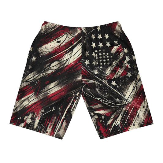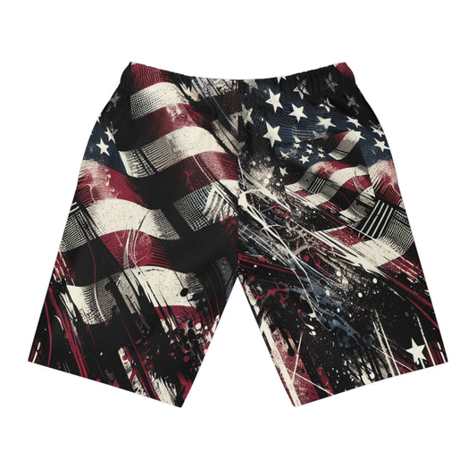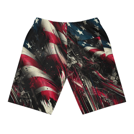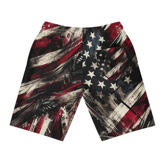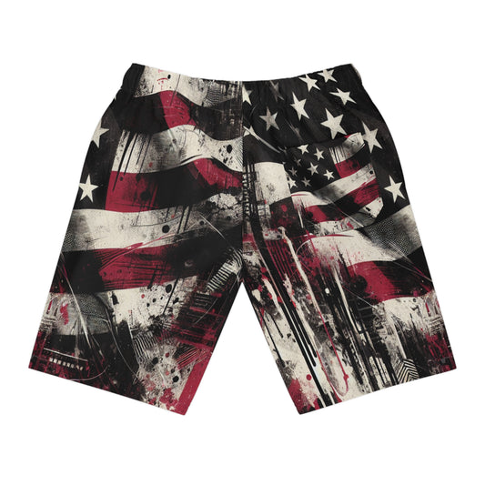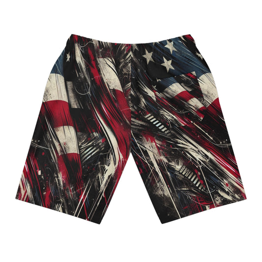 Grunge Flag Graffiti Shorts | Distressed American Patriot Streetwear | Edgy Urban Style Splash Art | Patriotic Streetwear Shorts