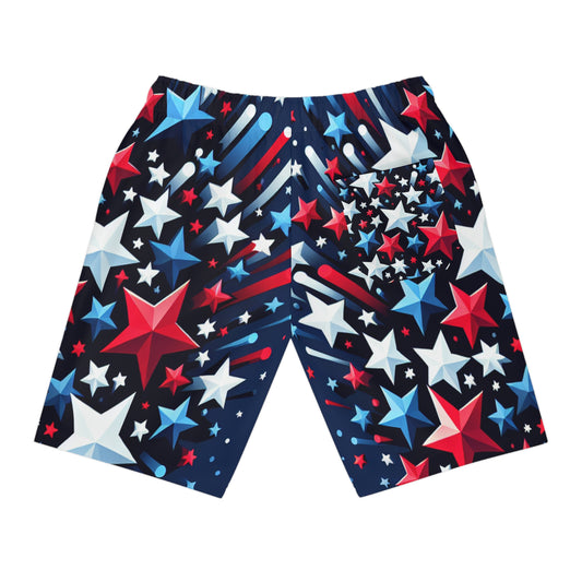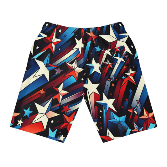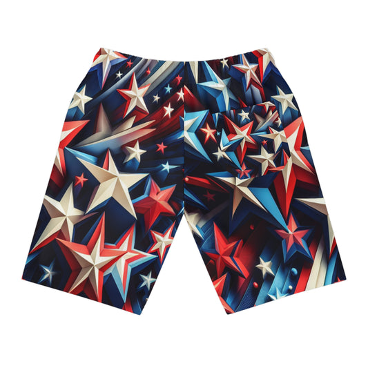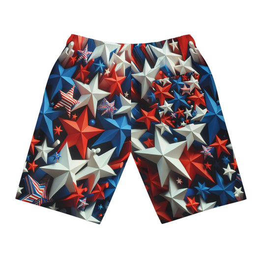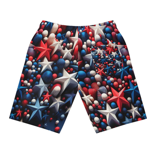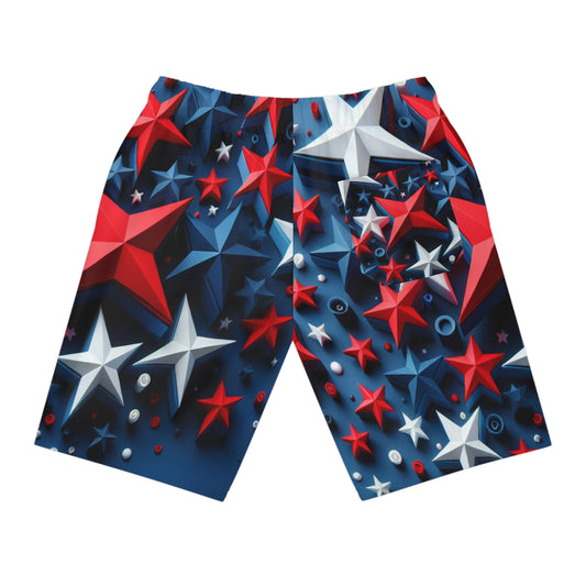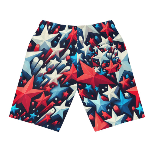Patriotic 3D Star Shorts - Red, White, & Blue - Dynamic Starry Design - Festive Summer Celebration Wear - Patriotic Streetwear Shorts
