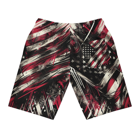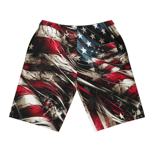 Grunge American Glory: Distressed Flag Graphic Shorts, Urban Streetwear Graffiti Inspired Abstract Art - Patriotic Streetwear Shorts