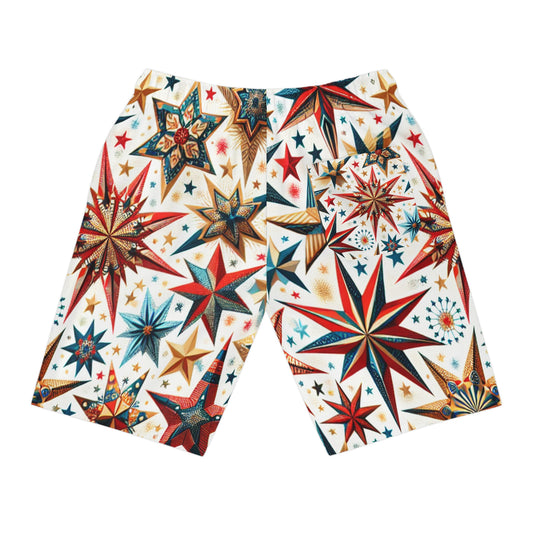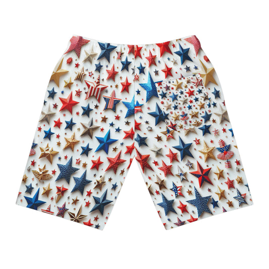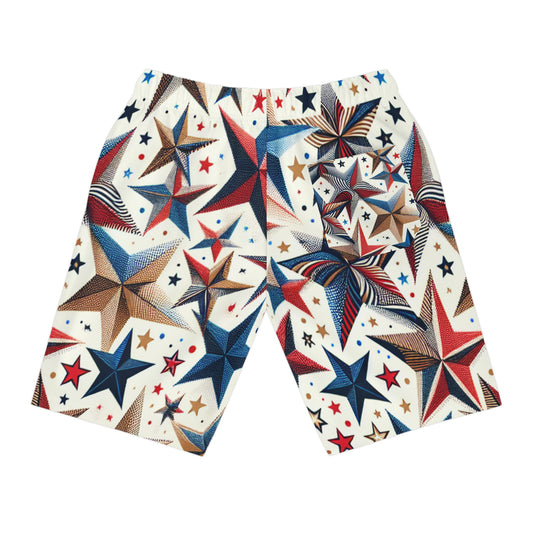 Festive Star-Spangled Shorts: Patriotic Red, Blue & Gold Star Design, Perfect for Independence Day Celebrations - Patriotic Streetwear Shorts