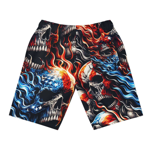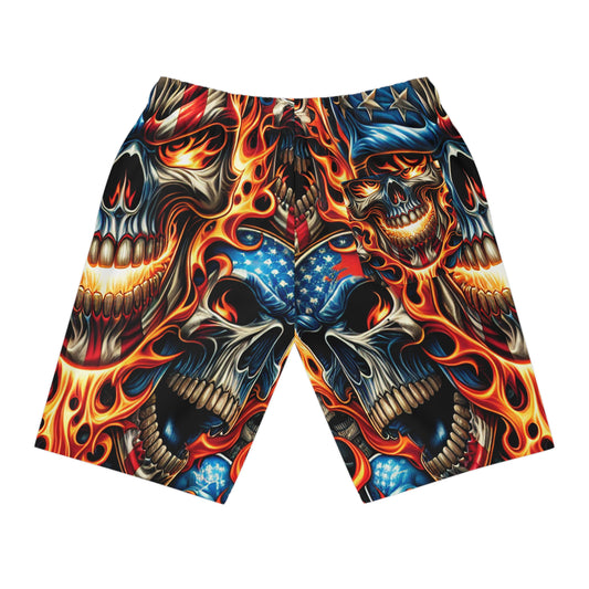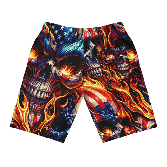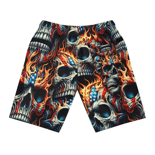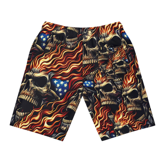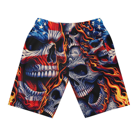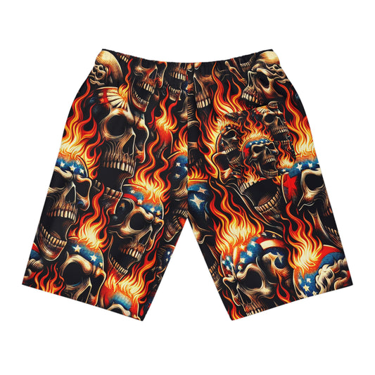Intense Inferno Skulls: Patriotic Blaze Edition Shorts - Patriotic Streetwear Shorts