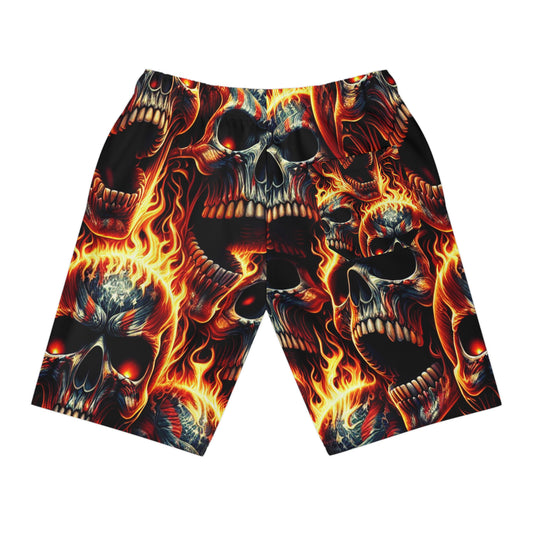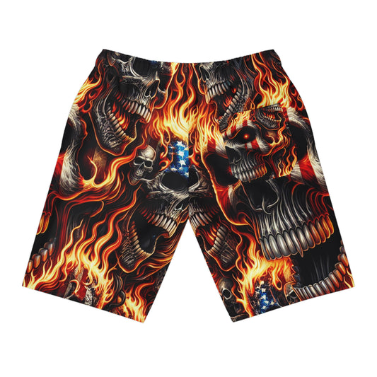 Blazing Patriotism - Skulls Aflame Inked Graphic Shorts - Patriotic Streetwear Shorts