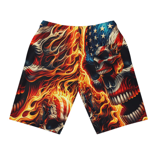 Skull Inferno Patriotic Aesthetics Men's Shorts - Patriotic Streetwear Shorts