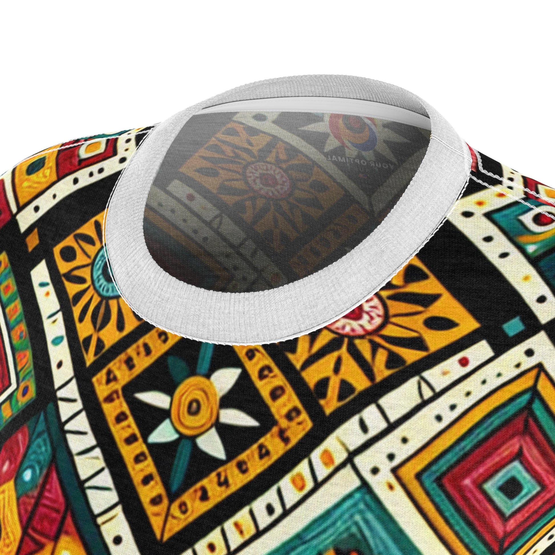 Immerse yourself in the captivatingly detailed design of our African Textile Pattern T-Shirt. Enriched with bold primary colors and intricate tribal patterns, this African Inspired shirt captures the vibrant storytelling of traditional African textiles. Emanating warmth and rhythm, each diamond showcases a unique pattern that piques curiosity. Perfect for embracing cultural richness or adding eclecticism to your wardrobe. #AfricanTextile #CulturalFashion #TribalDesign #VibrantTshirt #EthnicWear #AfricanInspired #BoldColors #GeometricPattern #StorytellingShirt #FashionWithDepth